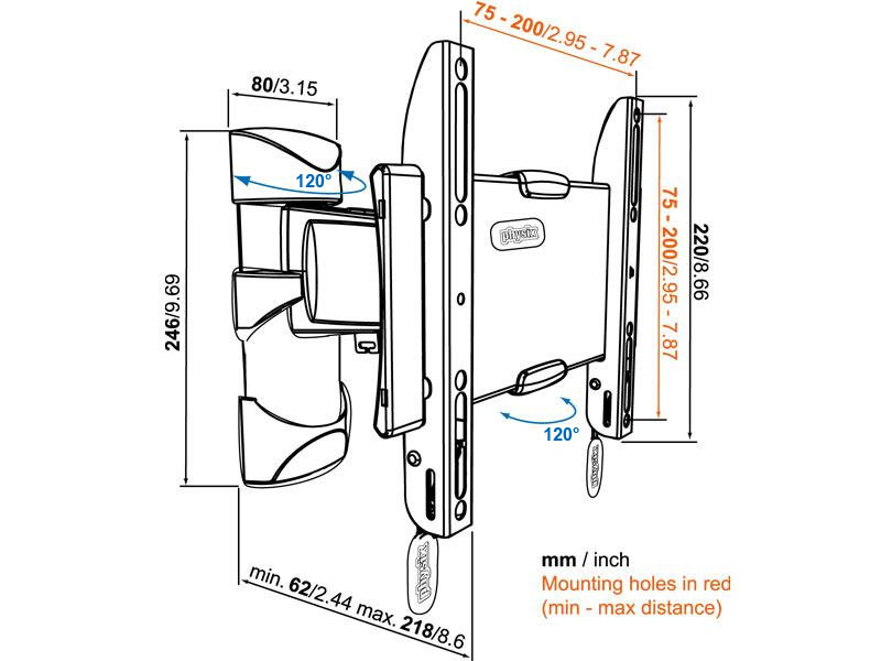 | VESA Standard: | 100x100, 200x100, 200x200mm (www.vesa-standard.de) |