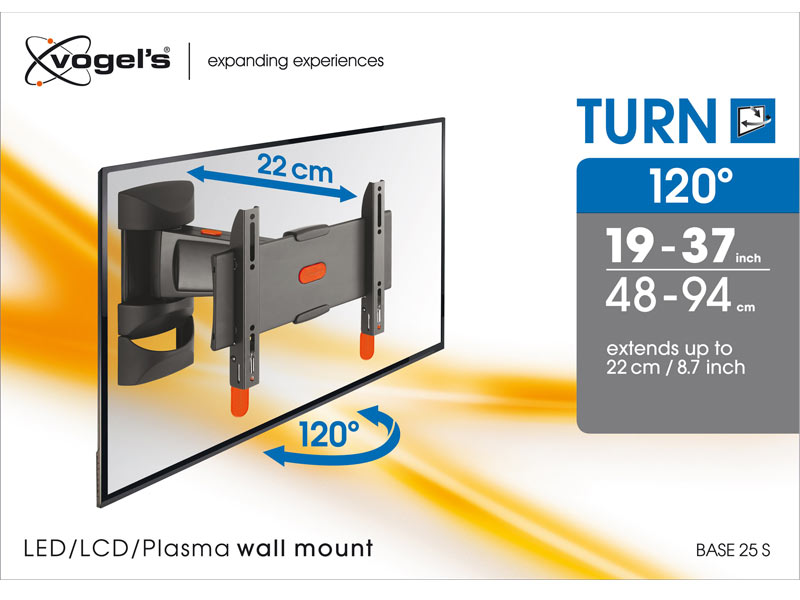 Befestigen Sie Ihren Fernseher an der Wand mit dem Schwenkarm Vogels Base 25 S LCD-Wandhalterung 19 Zoll-37 Zoll. Der schwarze Wandschwenkarm trägt bis zu 20 kg.