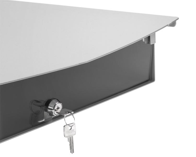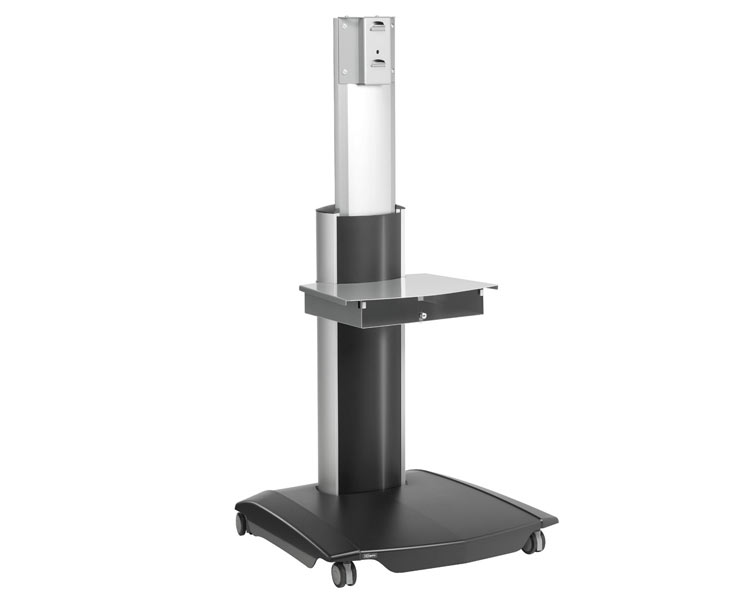 Der Vogel's PFA 9034 kann als Regal genutzt werden, aber auch ein DVD-Gerät oder ein Laptop PC können im Schrank sicher verwahrt werden. Eine abschließbare Abdeckung verhindert die unerlaubte Benutzung von DVD-Gerät oder PC. Die Abdeckplatte ist infrarotdurchlässig und ermöglicht so die Fernbedienung. Der verriegelbare Schrank kann auf der Vorder- und Rückseite von Wagen oder Fuß eingesetzt werden.