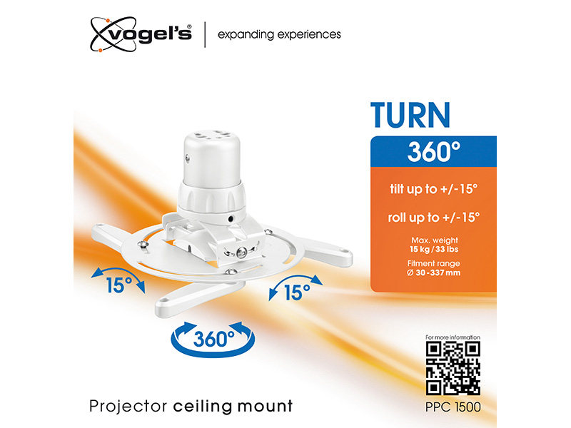 Mit der Vogels PPC 1500 Beamer Deckenhalterung weiß können Sie Ihren Projektor bequem an der Decke befestigen. Der Beamer kann dabei ein Gewicht von bis zu 15kg bei der Vogel's PPC1500 Projektorhalterung haben