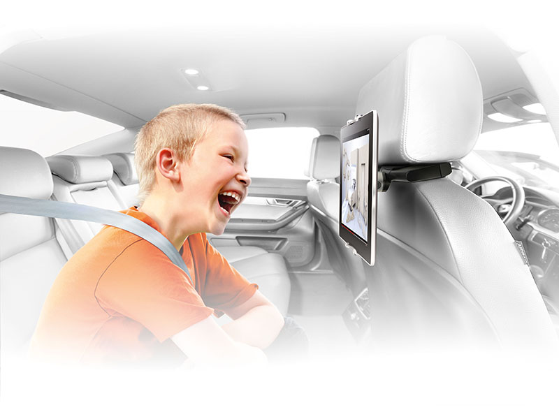 - Tablethalterung an den Kopfstützen am Autositz